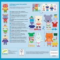 Eine Collage-Box mit allem, was man braucht, um 4 Silhouettenfiguren mit zahlreichen Elementen verschiedenster Texturen (Filz, Schaumstoff, Pailletten, Bänder, Bommel, bewegliche Augen) zu dekorieren. Das Kind wählt ein Bild und klebt die Elemente auf, um es zu vervollständigen. Zahlreiche verschiedene Materialien, die auf Silhouetten aus dickem Karton zu kleben sind. Und ein wirklich süßes Ergebnis!