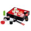 Das Spielset aus hochwertigem Holz enthält alles, was für ein gemütliches Picknick im Park gebraucht wird. Brotscheiben, Salatblätter, Käsescheiben, Tomaten, Ketchup sowie ein Messer und ein Tablett sind in der praktischen offenen Aufbewahrungsbox enthalten.