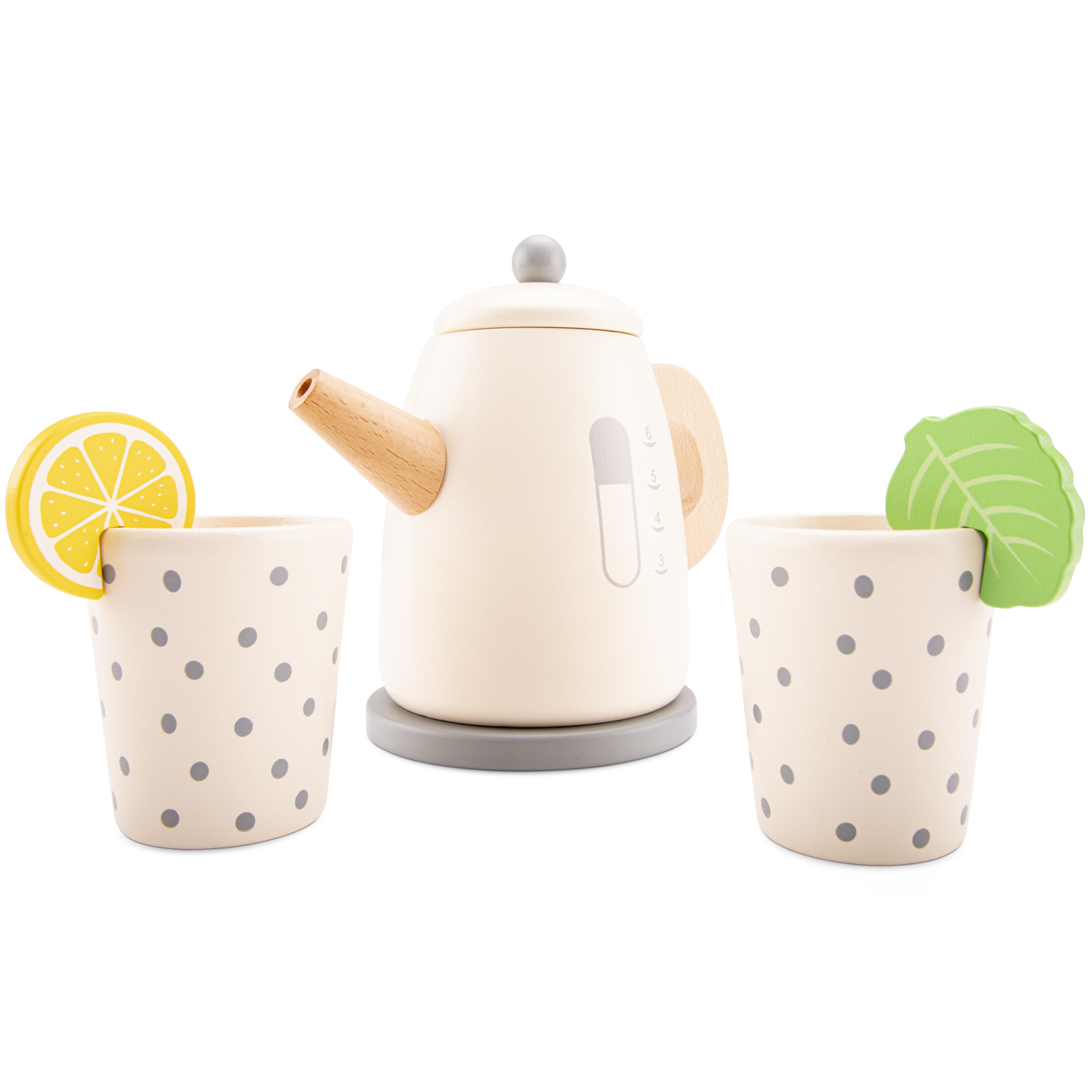 Machen Sie sich bereit für eine entzückende Teeparty mit diesem Holzkessel von New Classic Toys. Dieser Holzkessel hat ein realistisches Aussehen, einen stabilen Griff und einen Ausgießer und hat die perfekte Größe für kleine Hände. Beobachten Sie, wie Ihr Kind fantasievoll spielt und seine eigenen Teekreationen zubereitet und serviert. Das Set enthält außerdem ein Minzblatt und eine Zitronenscheibe, was den Teezubereitungsabenteuern noch mehr Spaß macht. Mit zwei mitgelieferten Tassen können sie ihren Tee mit Freunden oder ihren geliebten Spielsachen genießen und so die Entwicklung sozialer Fähigkeiten fördern. Inspirieren Sie die Kreativität Ihres Kleinen mit diesem hölzernen Wasserkocher, einer wunderbaren Ergänzung für jede Spielküche.