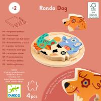 Rondo Dog ist ein Puzzle aus Holz zum Thema Tiere, das sich einfach zusammensetzen lässt. Die vier Tiere bilden einen Reigen, das Kind platziert sie anhand des äußeren Zuschnitts und der Striche auf dem Untergrund und entwickelt so ein Verständnis für Formen sowie sein Koordinationsvermögen.