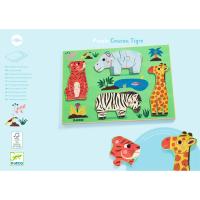 Coucou Tiger ist ein leicht zusammensetzbares Holzpuzzle zum Thema wilde Tiere. Das Kind setzt die 4 Tiere zusammen. Jedes Tier besteht aus 3 Teilen mit einfachen und bunten Formen, die anschließend wieder in die Unterlage gesetzt werden können.