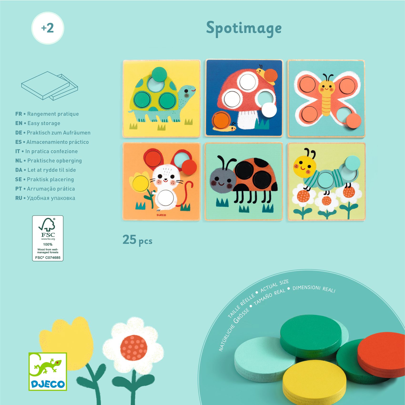 Ein Lernspiel aus Holz, mit dem Kinder ab 2 Jahre spielerisch lernen, Farben zu erkennen und zuzuordnen. Das Kind wählt eine Holzunterlage mit 2, 3 oder 4 Öffnungen. Er hat Spaß daran, den Token der entsprechenden Farbe in das richtige Loch zu legen, um das Bild zu vervollständigen.