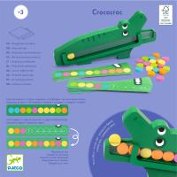 Ein Krokodil aus Holz, das die farbigen Spielsteine verschlingen wird. Das Kind legt die Karte ab, indem es den Bauch des Krokodils verdeckt. Anschließend setzt es die farbigen Spielfiguren entsprechend den Anweisungen der verdeckten Karte ein. Ein Spiel für Kinder ab 3 Jahren, um auf spielerische Art und Weise zu lernen!