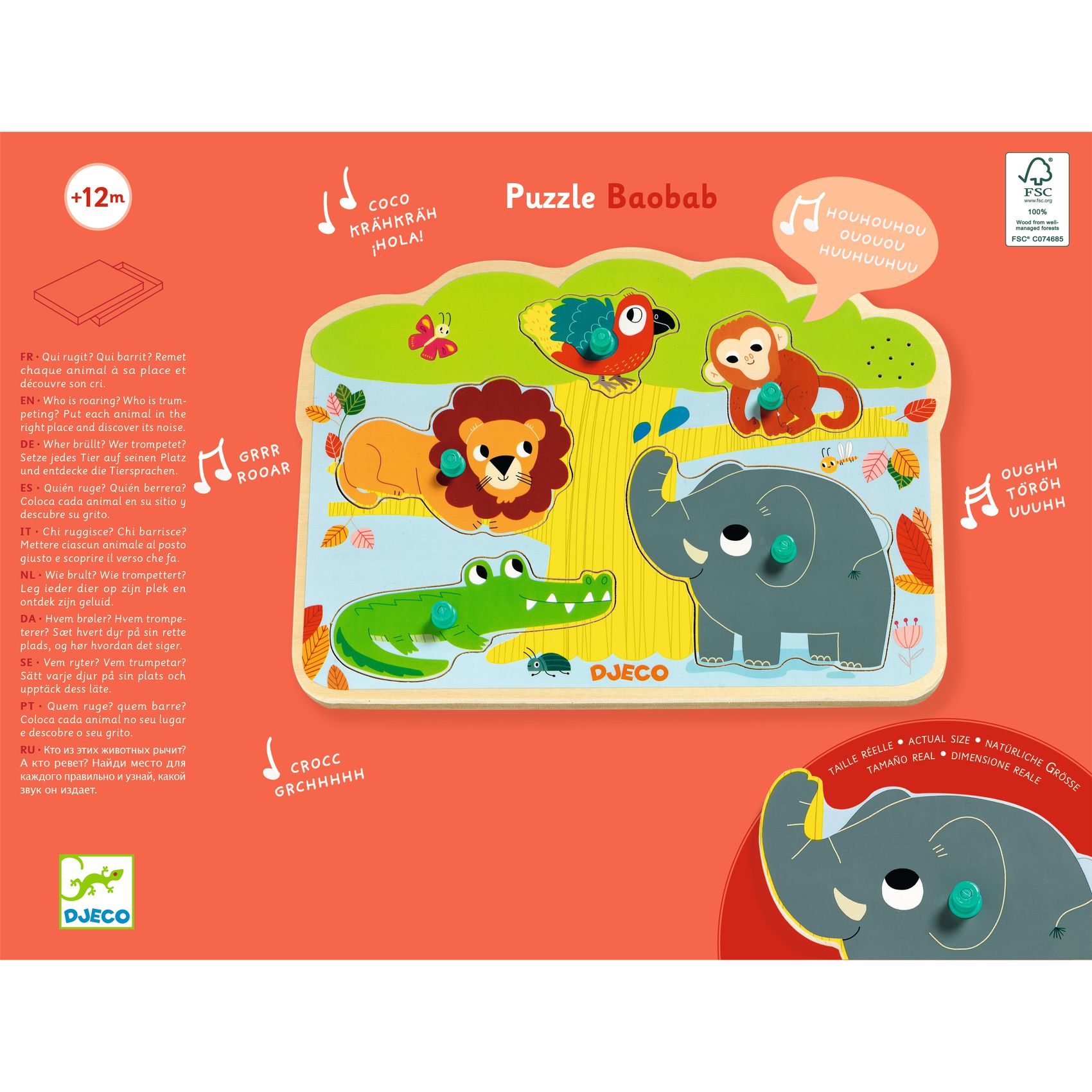 Baobab ist Klangpuzzle mit Holzunterlage zum Thema Savanne.