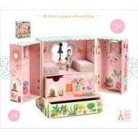 Geheimer Garten ist eine liebevoll illustrierte Spieluhr mit einer großen und einer kleinen Schublade für Schmuck und Geheimnisse, zwei Ringhaltern und vier goldenen Haken zum Aufhängen von Halsketten und Armbändern. Schüssel aufziehen, die schöne Dose öffnen und tada: Überraschung! Ein fein modelliertes Mädchen dreht sich und spiegelt sich in einem Spiegel in Form einer Blume zu den Klängen von ?Einladung zum Walzer? von Carl Maria von Weber.
