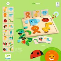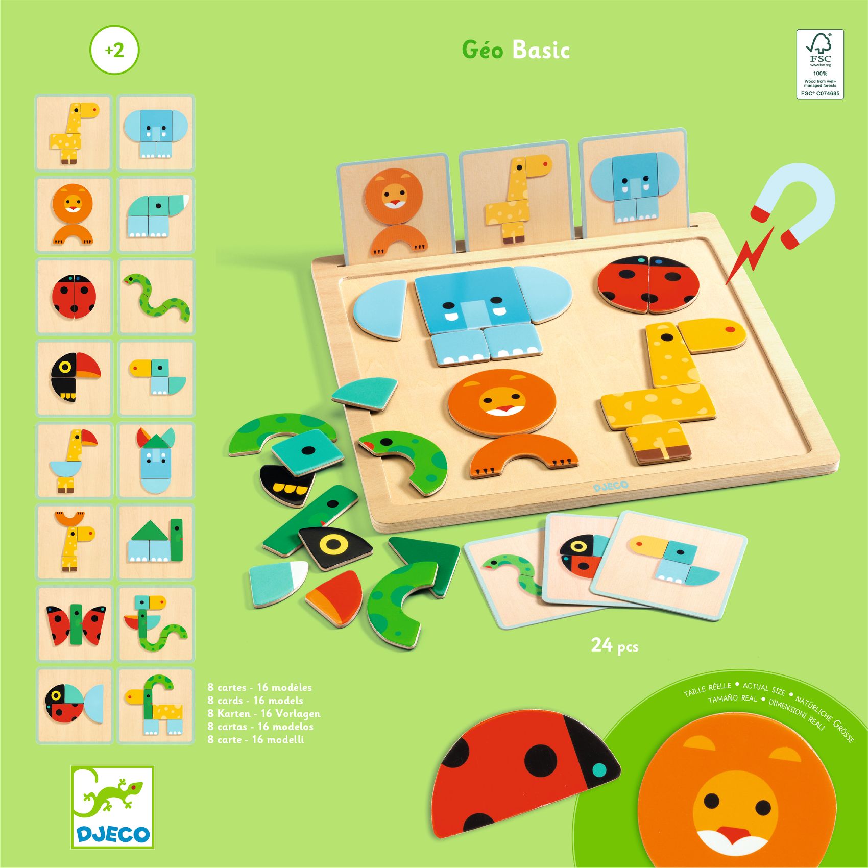 Ein Magnetspiel aus Holz, bei dem nach den 16 Vorlagen mit magnetischen Teilen die unterschiedlichsten Tiere gelegt werden. Auf der Tafel legt das Kind die auf den Vorlagen abgebildeten Tiere mit den bunt gestalteten Holzteilen.