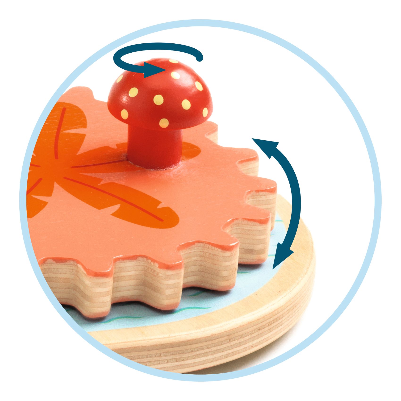 Die Musik erklingt beim Drehen der Zahnräder in beiden Richtungen.