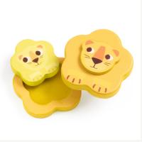 Magnetisches Versteckspiel. Fünf Wildtiere, die man öffnen kann und in denen ein Baby der geometrischen Form des Elternteils auftaucht.