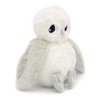 Diese 24 cm große, weiße Schneeeule ist aus Cord gefertigt und sehr weich. Ein Eisohreulenbaby versteckt sich im Bauch der Mutter.