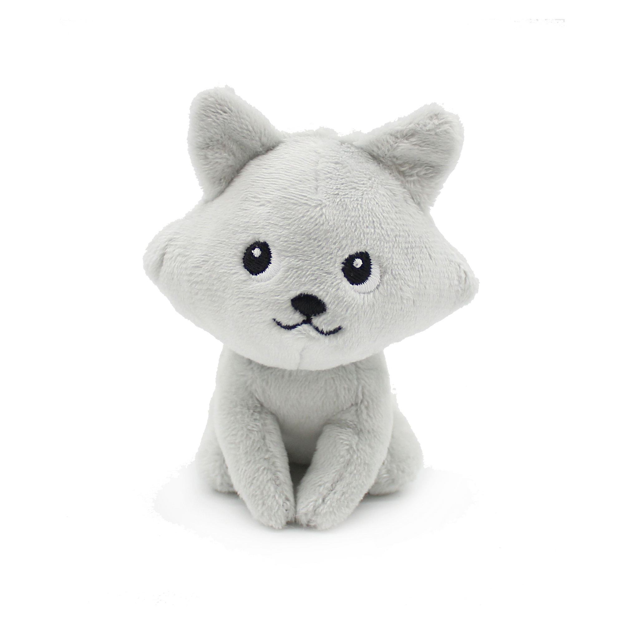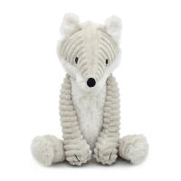 Dieser 27 cm große, weiß-hellgraue Polarfuchs ist aus weichem Cord und Plüsch gefertigt. Und für extra Kuschelspaß ist in seinem Bauch ein Polarfuchsbaby versteckt.
