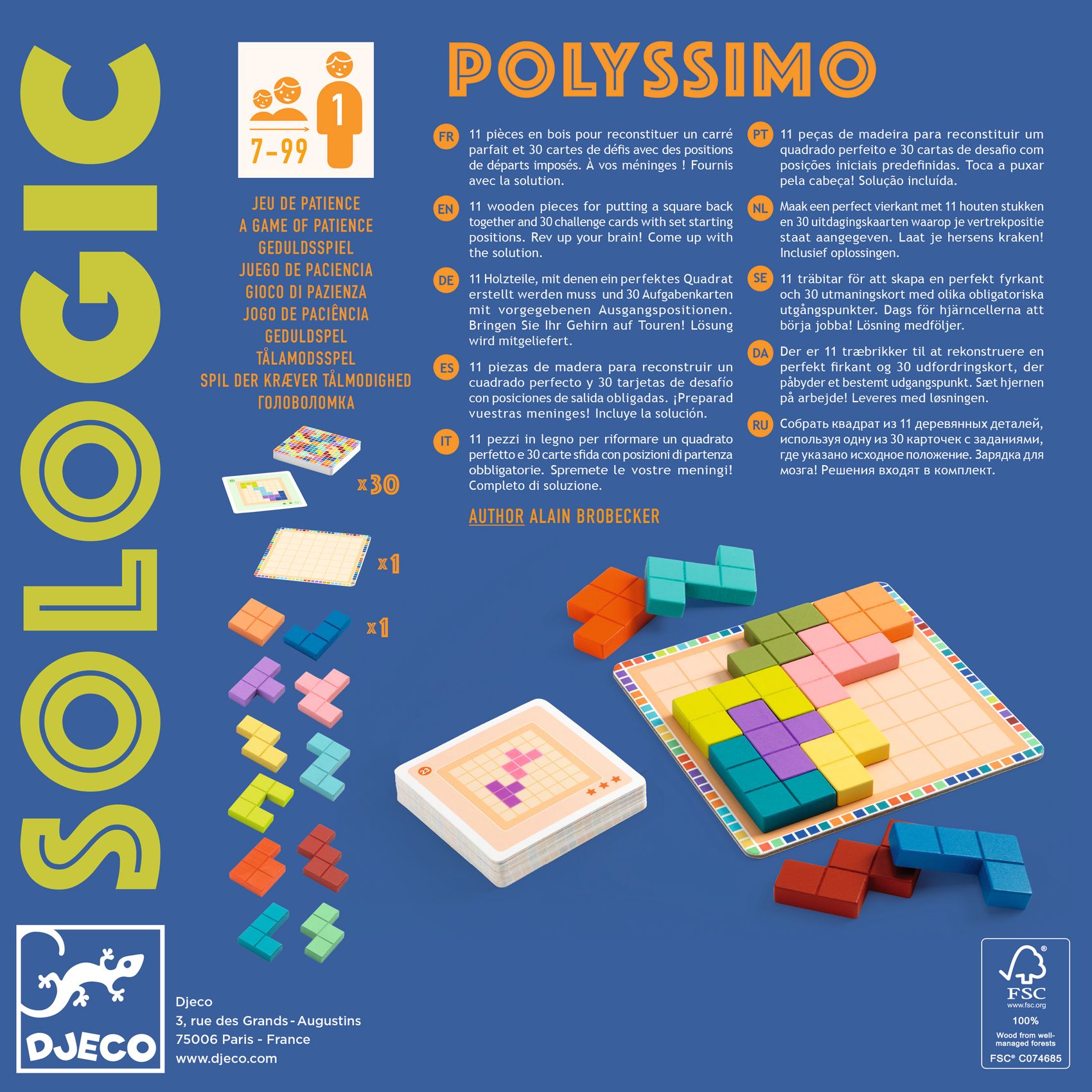 Ein Logikspiel, bei de man für jede Aufgabe ein perfektes Quadrat aus 11 Holzteilen erschaffen muss. Die Ausgangspositionen sind vorgegeben und für jede Aufgabe gibt es nur eine mögliche Kombination. Insgesamt gibt es 30 Aufgaben mit steigenden Schwierigkeitsstufen. Testen Sie Ihr Geschick!