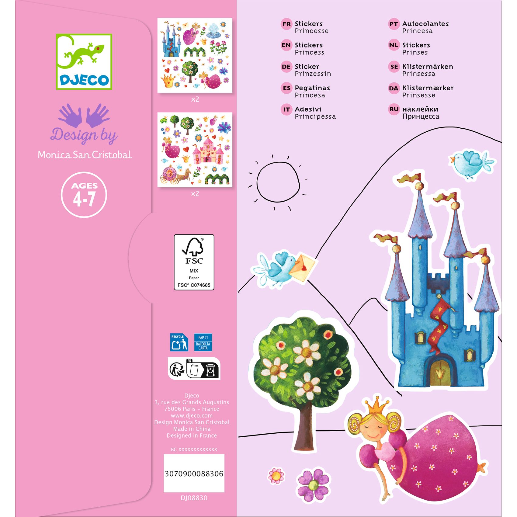 Ein Set mit 160 Stickern zum Universum ? Prinzessin Marguerite?. Fräulein, Herzen, Schloss, Blumen usw. Alles steht bereit! Das Kind klebt die zahlreichen Sticker nach Wunsch auf und erschafft schöne Szenen oder nutzt sie als Dekoration für andere Objekte.