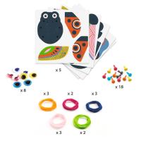 Inhalt: 5 illustrierte Tafeln aus dickem Karton, 12 dicke Chenillefäden, 16 Musterklammern, 8 große Wackelaugen und 1 Schritt-für-Schritt-Anleitung.