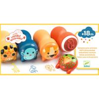 4 ergonomische und selbstfärbende Stempel von Djeco. Ein Schaumstoffgriff, der speziell für kleine Hände und selbstfärbende Stempel geeignet ist, die gut markieren.
