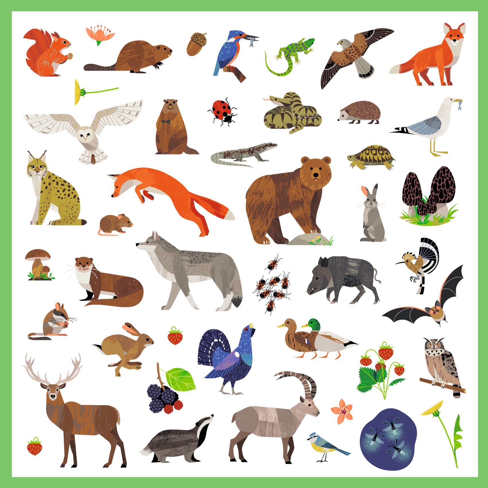 Ein Set mit 160 Stickern zum Thema Tiere Europas. Vom unverzichtbaren Hirsch, Fuchs oder Wildschwein bis zum weniger bekannten Auerhuhn, Dachs oder Stieglitz entdeckt das Kind die Vielfalt der europäischen Flora und Fauna. Es klebt die Sticker ganz nach eigener Fantasie auf und erschafft wunderschöne Schauplätze oder nutzt sie zum Dekorieren anderer Objekte!