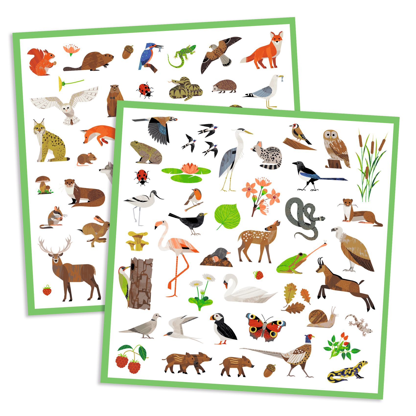 - 2 unterschiedliche Bögen mit jeweils 2 Exemplaren, damit das Kind seine Lieblingssticker wiederverwenden kann.