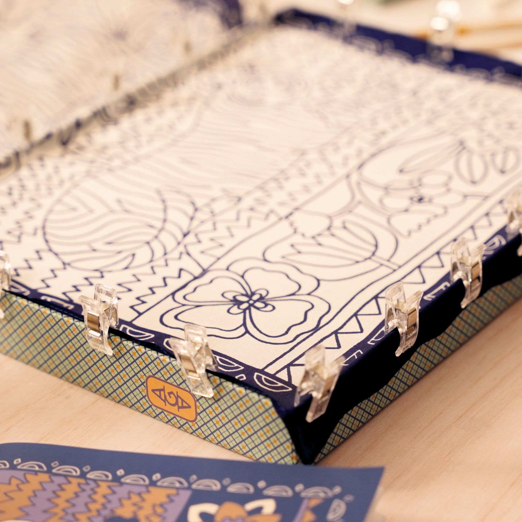 Eine hübsch verzierte Schachtel, in der Sie Ihr Werk zwischen den Bastelstunden aufbewahren und die sie am Ende in eine Schatzkiste verwandeln können.