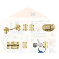 - Vier Arten von Metallverschlüssen: ein Schlüssel, ein Riegel, ein Haken und ein Hebelverschluss.