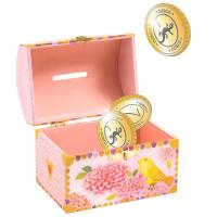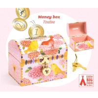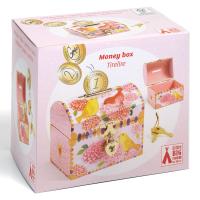 Bezaubernde Spardose. Schlitz mit Metallkante zum Hineinstecken der Münzen. Schloss mit 2 Schlüsseln
