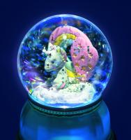 Eine zauberhafte Kombination aus Nachtlicht und Schneekugel. Schaltet man die Nachtlichtfunktion ein, leuchtet die Kugel in wechselnden Farben und ein integrierter Motor wirbelt die Glitzerpartikel auf. Was wie echtes Glas aussieht, besteht aus robustem, langlebigem Hartplastik. Dank der Timer-Funktion schaltet das Nachtlicht sich nach 45 Minuten selbst ab. Betrieben mit drei AA-Batterien.