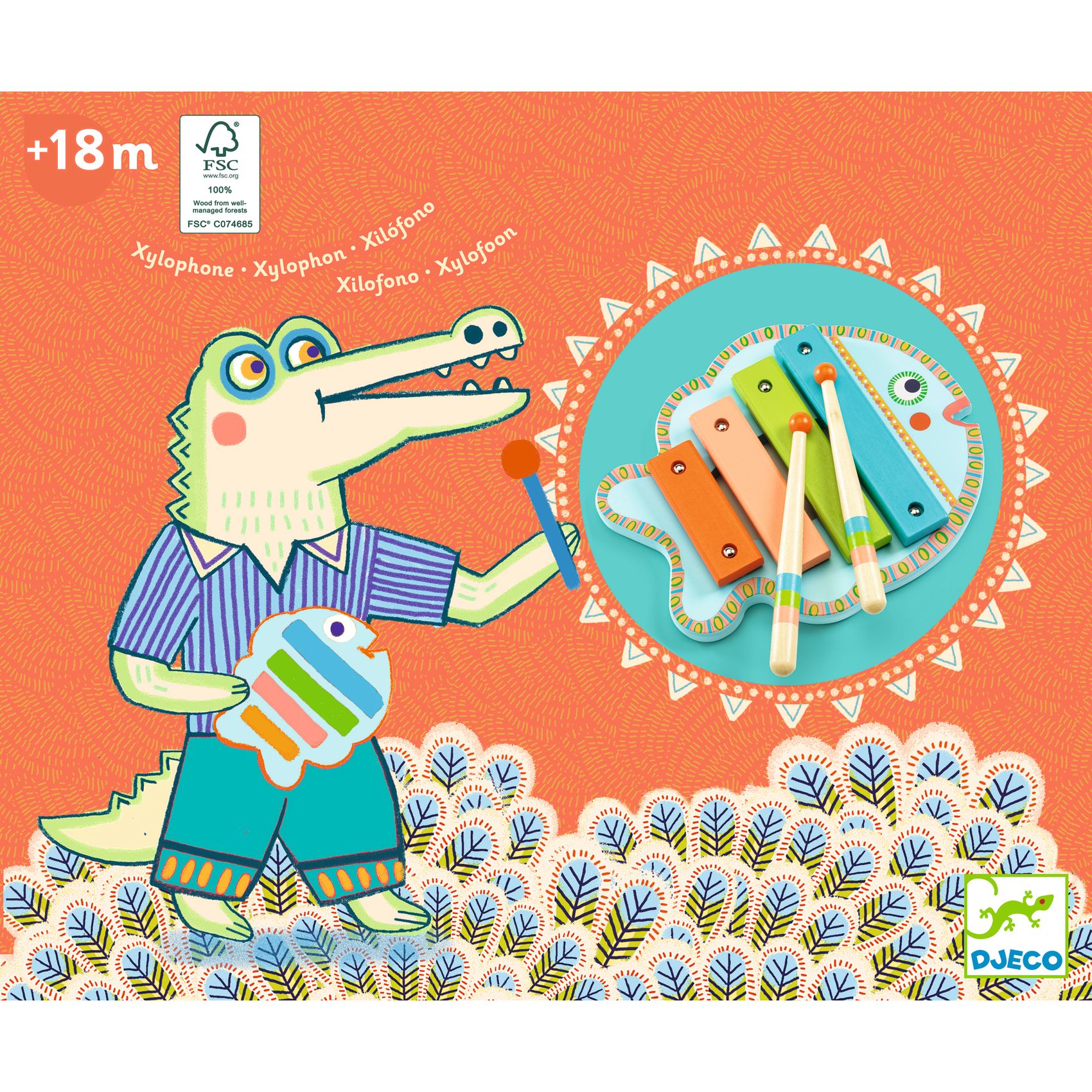 Ein wunderschön illustriertes Xylophon in Form eines Fisches für Kinder. Das ideale Geschenk für kleine Musiker ab 18 Monaten.