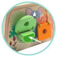 Multi Boita ist eine Formbox aus Holz, mit der das Kind 3 unterschiedliche Arten entdeckt, geometrische Formen in die entsprechenden Löcher zu stecken. Sie enthält 8 Teile in verschiedenen Farben und Formen, die in die Box gesteckt werden müssen. Das Kind schiebt die Formen in die passenden Öffnungen, wobei es sich an ihrer Form, aber auch an ihrer Farbe orientieren kann. Am Ende kann es die Teile herausholen, indem es seine Hand durch die großen elastischen Fäden auf der Rückseite der Box steckt.