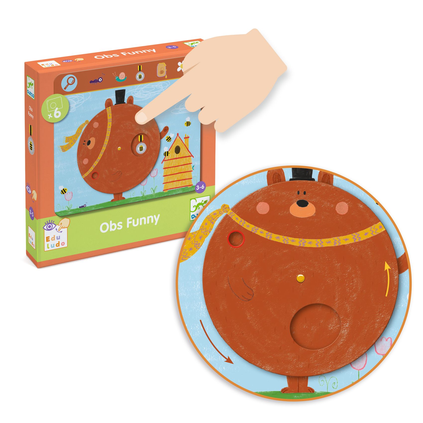 Ein allererstes Such- und Findespiel ... originell, unterhaltsam und animiert! Dank der 6 Tafeln mit Drehscheiben lädt jede Spielrunde zum Greifen und Entdecken ein. Wie beim echten Guck-guck-Spiel erwachen die Illustrationen unter deinen Fingern zum Leben!