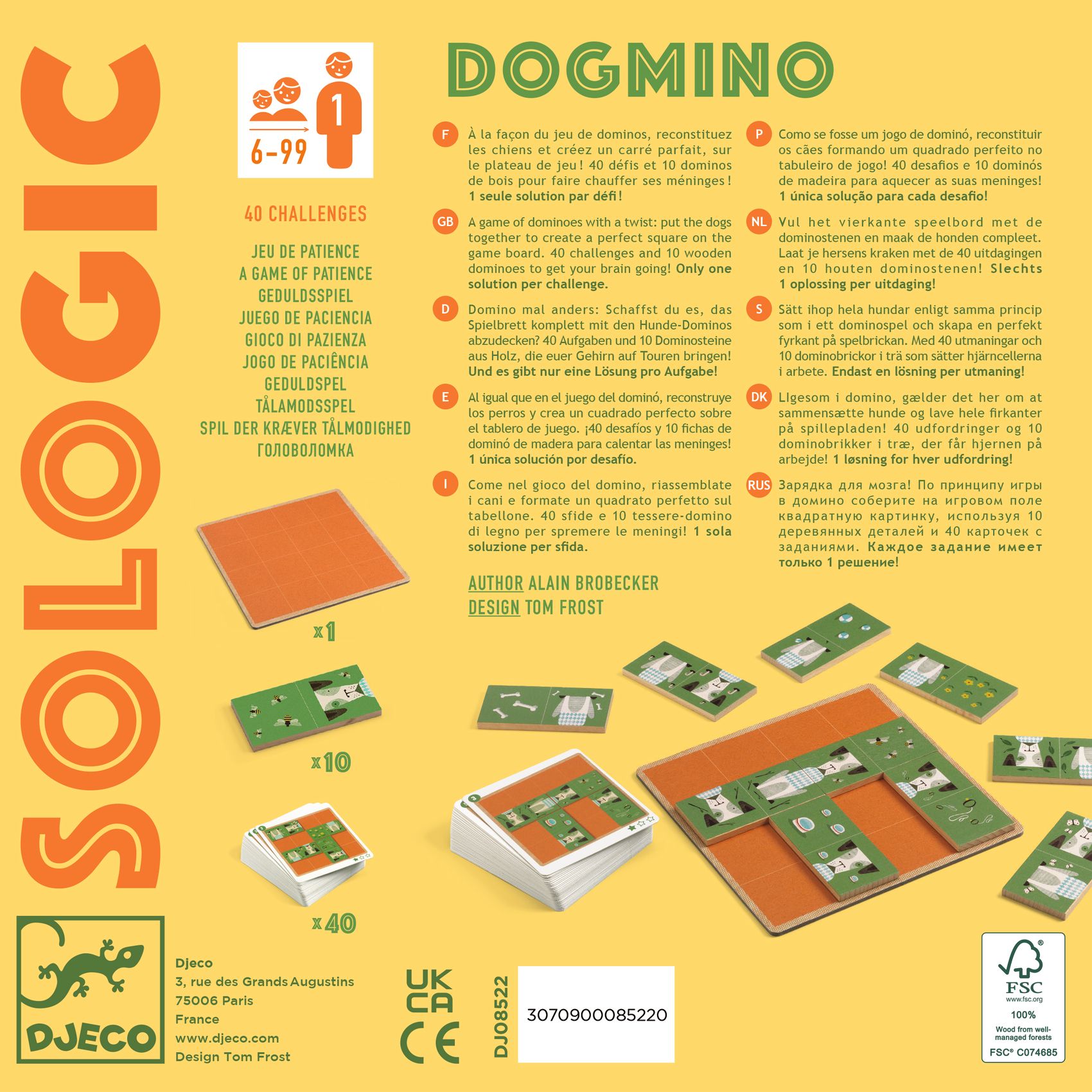 Setzt ähnlich wie beim Domino die Hunde zusammen und bildet auf dem Spielbrett ein perfektes Quadrat! 40 Aufgaben und 10 Holzdominosteine, um euer Gehirn zu trainieren! Nur 1 Lösung pro Aufgabe!