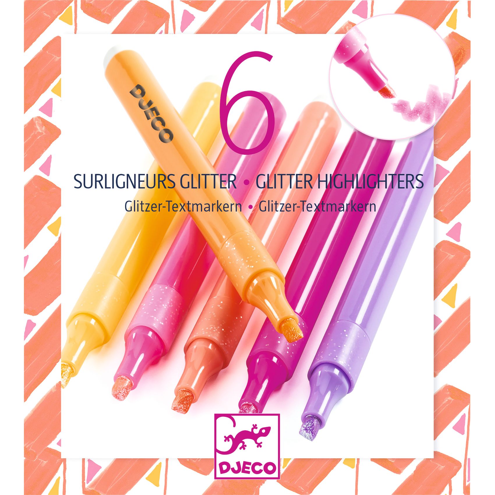 Set aus 6 Glitzer-Textmarkern ? Grapefruit